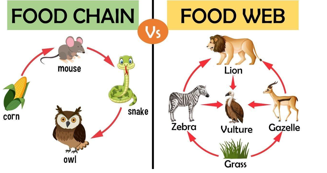 A food web is made up of many food chains that are linked together. It is like a food chain, but it’s much bigger than a food chain.