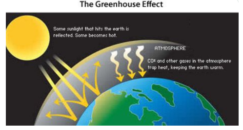 The greenhouse effect is the process through which heat is trapped near Earth's surface by substances known as 'greenhouse gases.' Greenhouse gases consist of carbon dioxide, methane, ozone, nitrous oxide, chlorofluorocarbons, and water vapor.